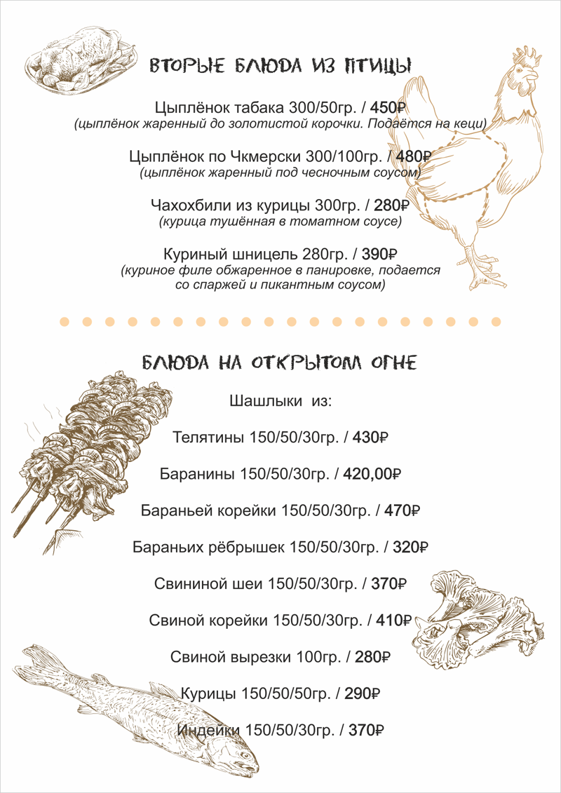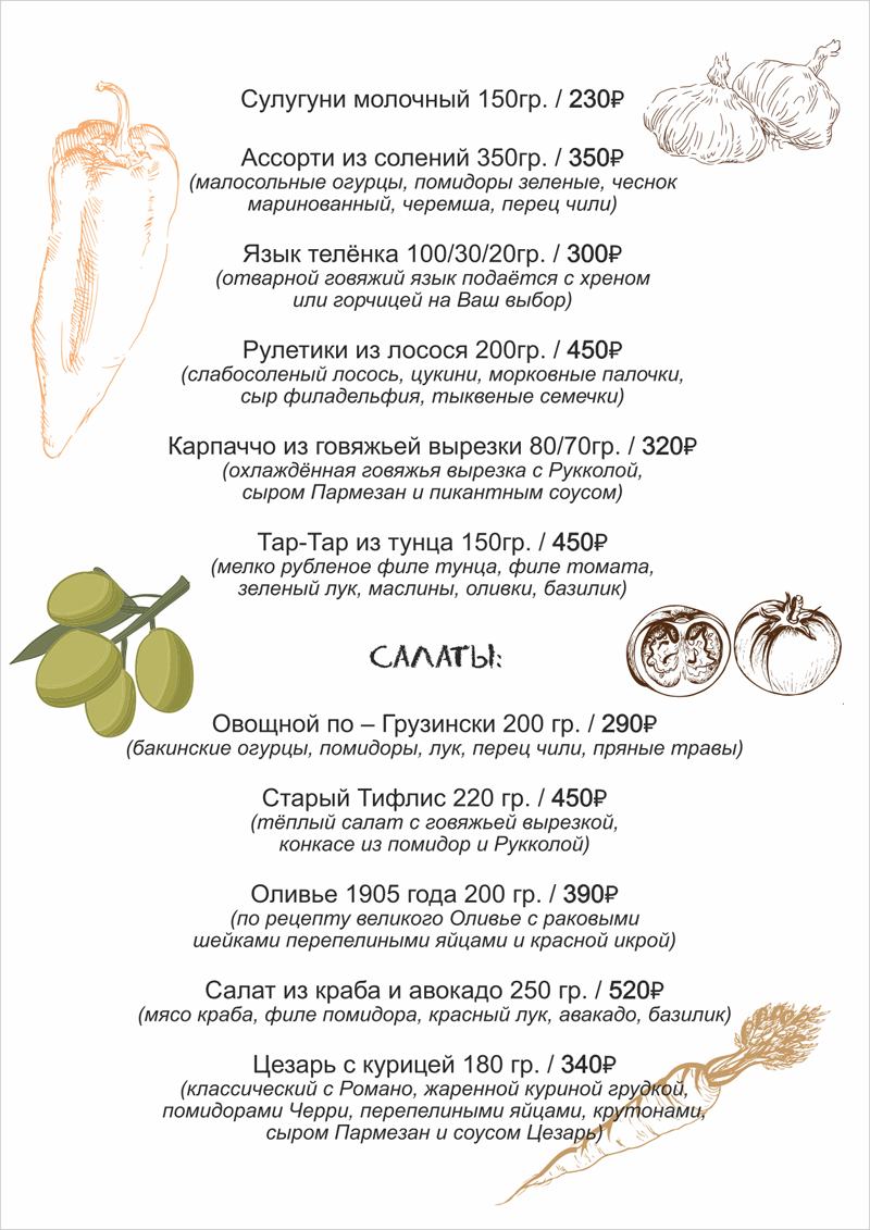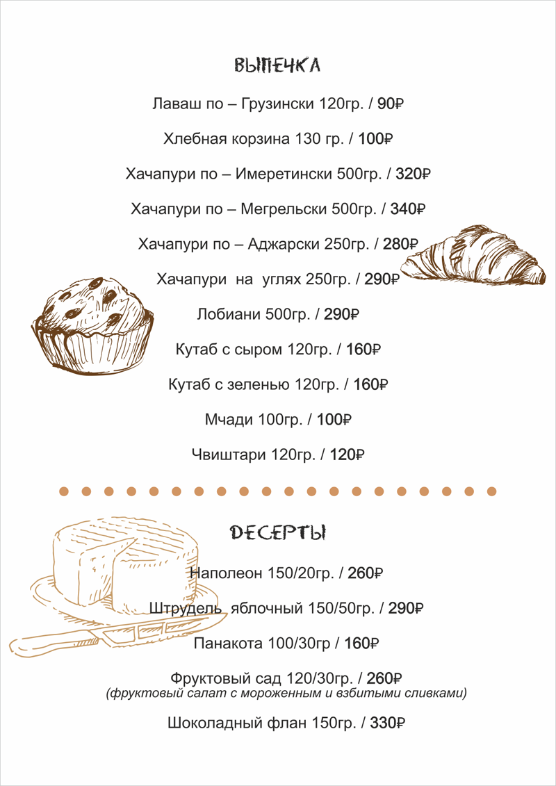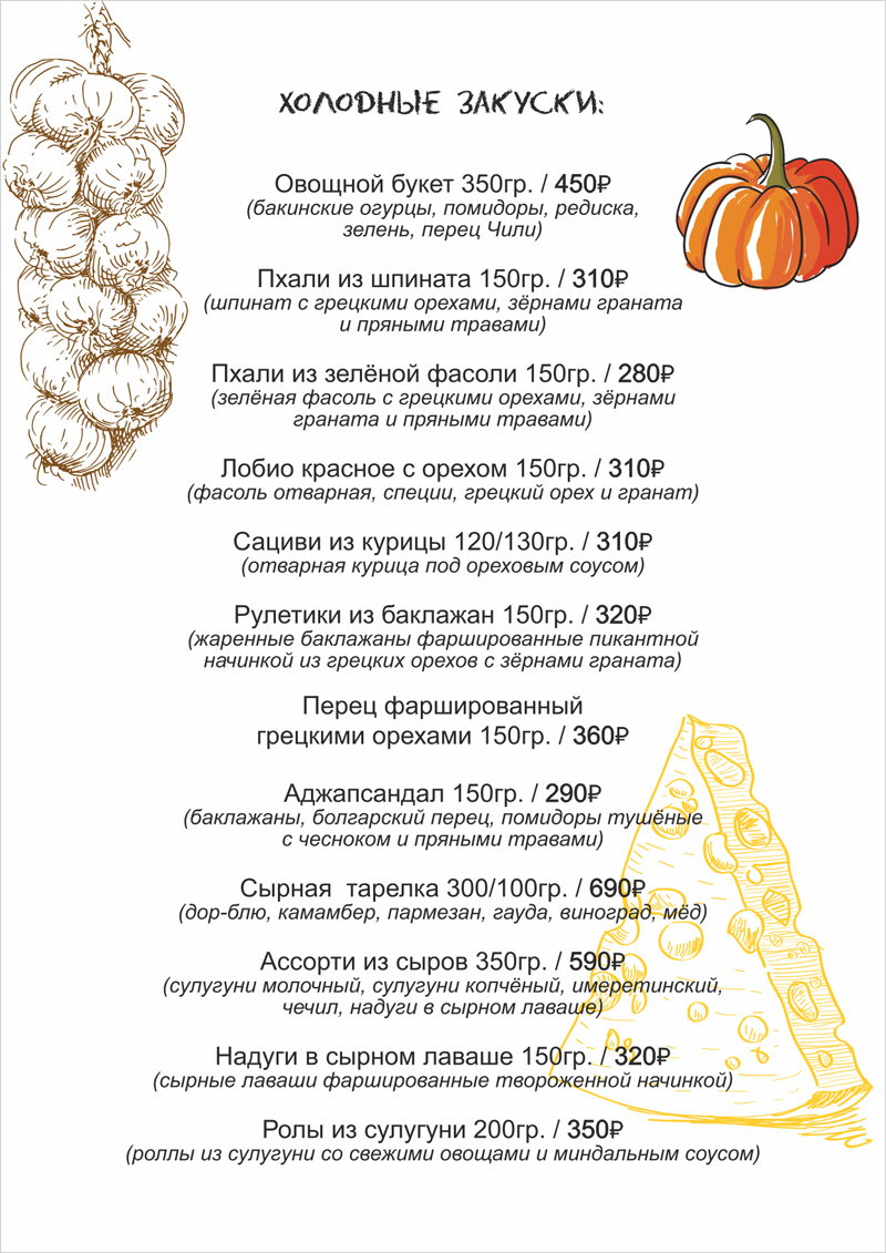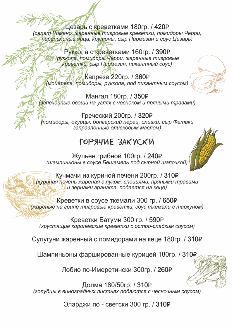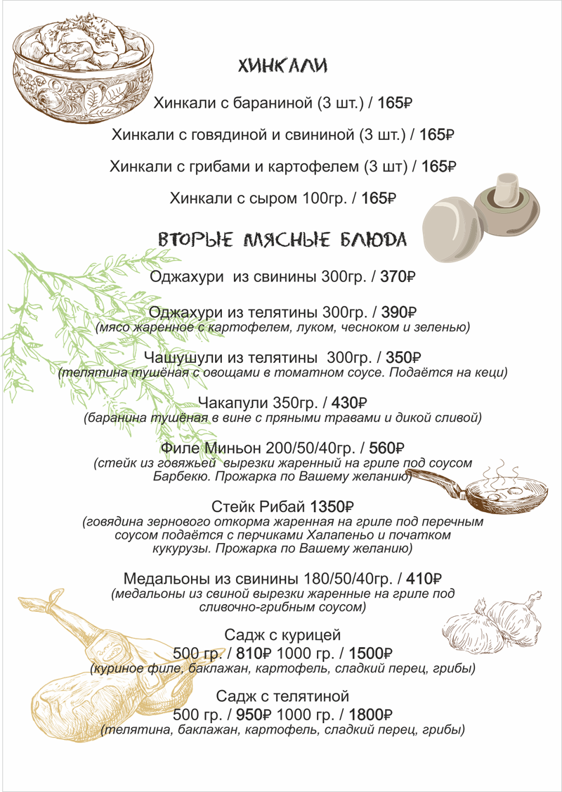 Меню «Хинкальная»