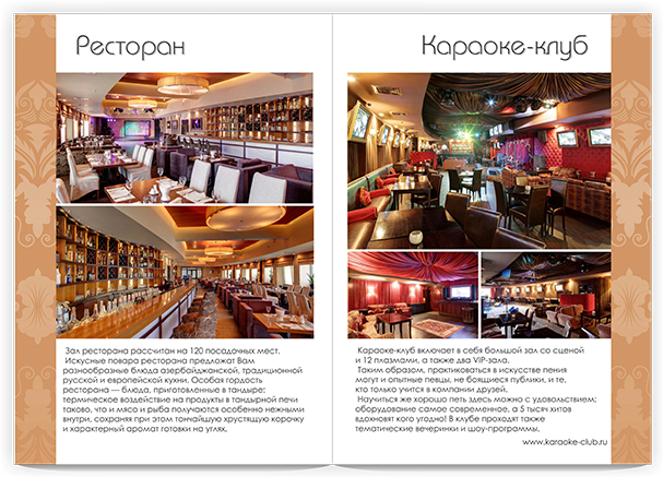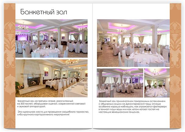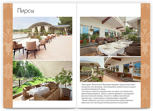 Акцент на Банкетный зал и Пирсы. Печатная и постпечатная обработка.