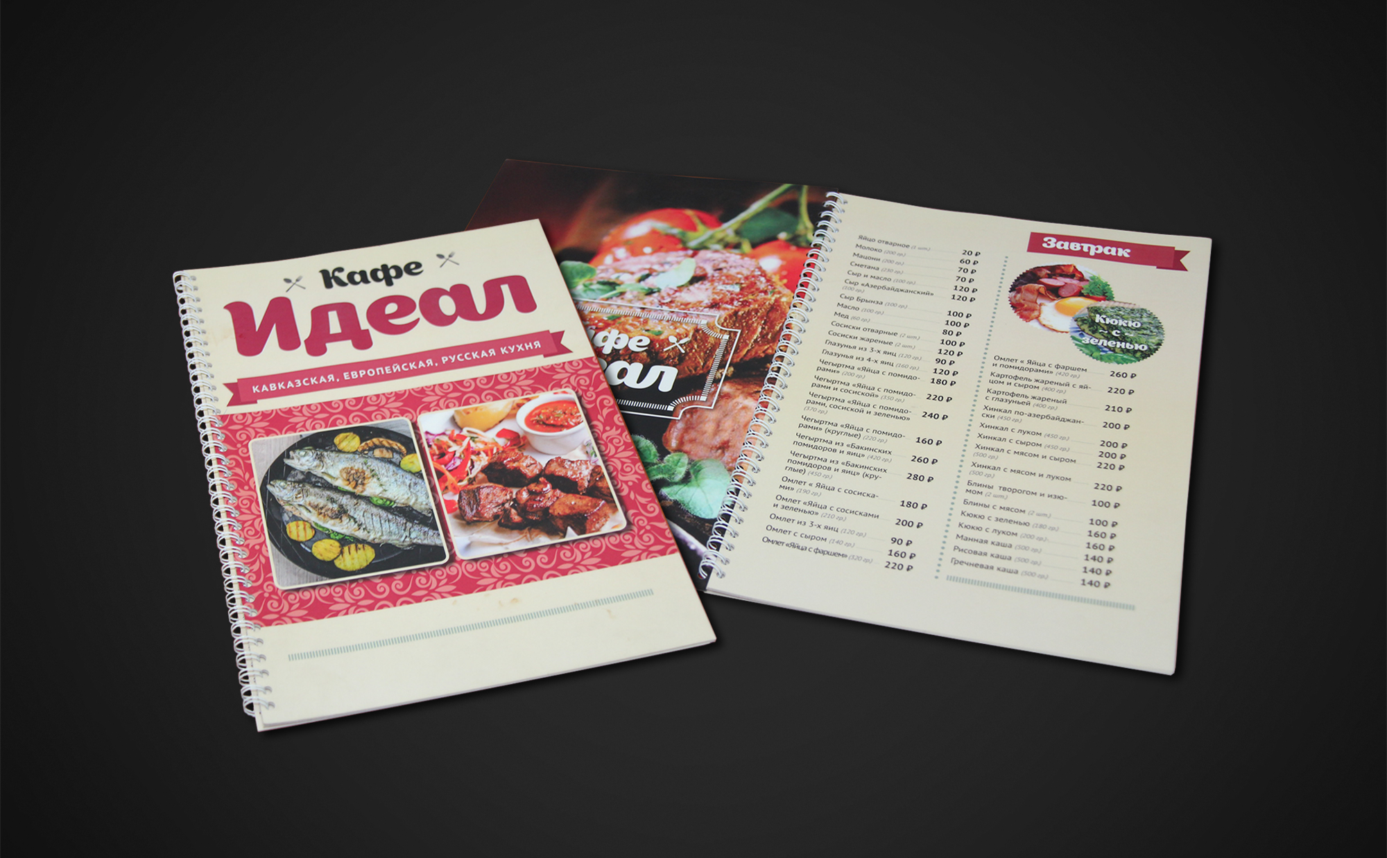 Внутренний блок со списком блюд и фотографиями мы печатаем на плотной ламинированной бумаге, чтобы меню прослужило дольше.