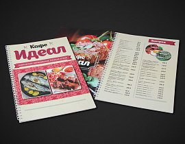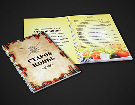 Меню на пружине обычно используют для сезонных предложений и карты напитков, а также для основного ассортимента в кафе. Пружина позволяет раскрыть меню так, чтобы обложка полностью лежала на столе, и ее можно было не придерживать.