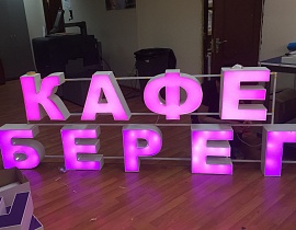 | Тираж | Объемные буквы со светящейся лицевой поверхностью. Лицевая поверхность изготовлена из акрилового стекла, обклеенноготранслюцентной пвх-пленкой. Боковины букв выполнены из пвх-пластика или алюминиевого профиля ALS, обклеенного цветной пвх-пленкой. Задняя стенка букв вырезана из пвх-пластика. Подсветка букв осуществляется светодиодными модулями. | Объемные буквы со светящимися лицевой и боковой поверхностями. Лицевая и боковая поверхности изготовлена из акрилового стекла, обклеенного транслюцентной пвх-пленкой. Задняя стенка букв вырезана из пвх-пластика. Подсветка букв осуществляется светодиодными модулями. | Объемные буквы с контражурной подсветкой. Лицевая поверхность изготовлена из цветного акрилового стекла либо из пвх-пластика, обклеенного цветной пвх-пленкой. Боковины букв выполнены из пвх-пластика, обклеенного цветной пвх-пленкой. Задняя стенка букв вырезана из прозрачного акрилового стекла. Подсветка букв осуществляется светодиодными линейками. Буквы крепятся к поверхности или основе при помощи дистанционных держателей. | Объемные буквы со светящейся лицевой поверхностью и контражурной подсветкой. Лицевая поверхность изготовлена из акрилового стекла, обклеенного транслюцентной пвх пленкой. Боковины букв выполнены из пвх-пластика, обклеенногоцветной пвх-пленкой. Задняя стенка букв вырезана из прозрачного акрилового стекла. Подсветка букв осуществляется светодиодными линейками. Буквы крепятся к поверхности или основе при помощи дистанционных держателей. |
