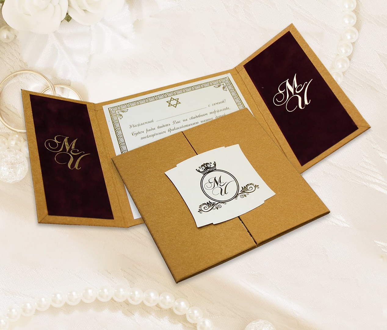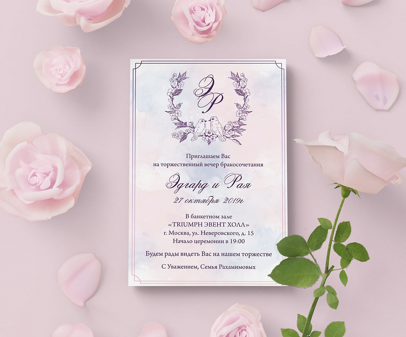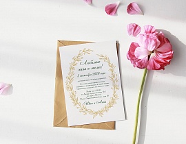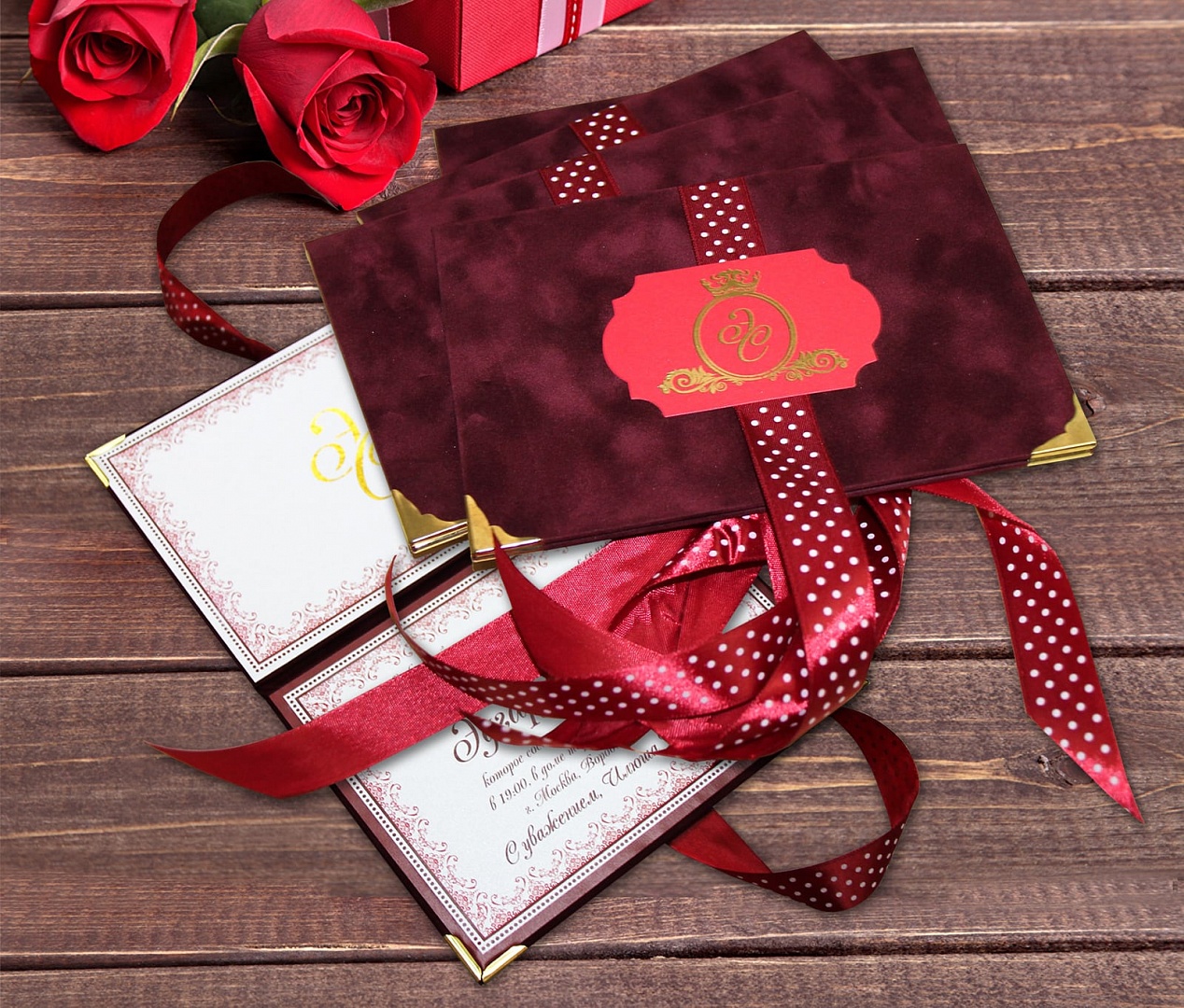 - Купить открытки под ключ. Когда типография полностью разрабатывает дизайн, выбирает цвет, материал готовой работы. Специалисты студии самостоятельно придумывают пригласительный текст, заказчикам требуется только указать количество экземпляров, дату и место проведения торжества.