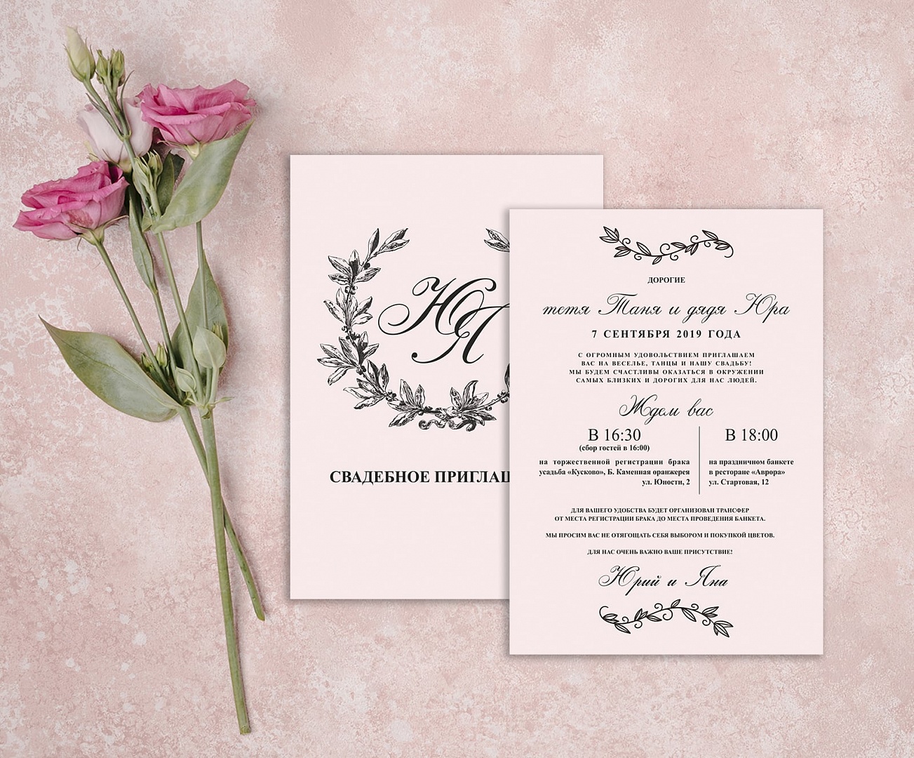 Проще всего выбрать дизайн открыток, когда свадьба имеет определенную стилистику. Выбор вариантов варьируется от стандартных карточек до изысканных писем в необычном исполнении. Для классического торжества подойдет печать на плотной белой бумаге, использование лаконичных шрифтов и минимум деталей.