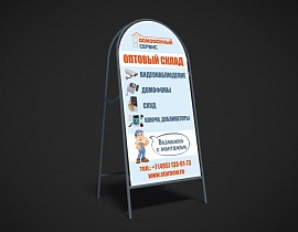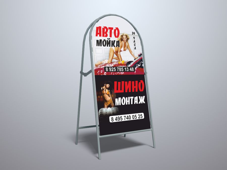 Метод самоклеящейся аппликации более практичен. Материал, наносимый на поверхность штендера, характеризуется устойчивостью к погодным условиям и нагрузкам любого характера.