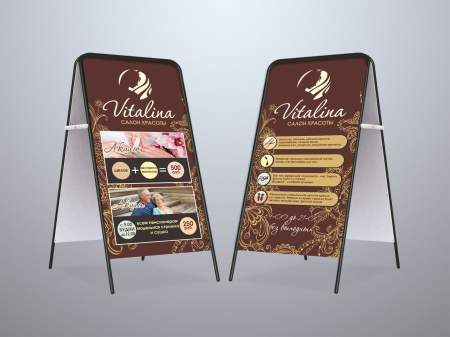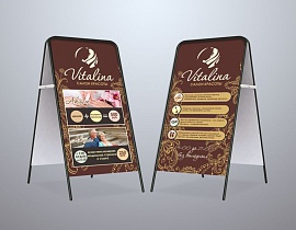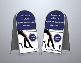 Двусторонний штендер (стойку) устанавливают в многолюдных местах с большим потоком движения: недалеко от проезжей части или тротуара.