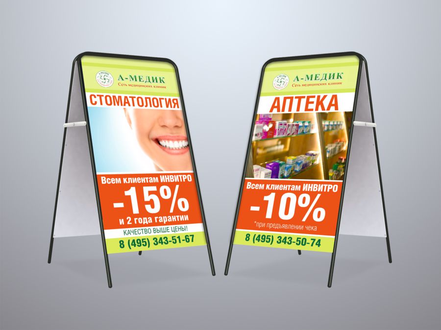 Также на штендере указывают информацию о компании (логотип, название, контактные данные и т.д.). Помимо этого желательно указывать направление движения (стрелочкой), схему проезда и приблизительное расстояние, чтобы заинтересованному клиенту было проще найти вашу компанию.