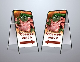 Наружная реклама – эффективный инструмент, который активно используют бизнесмены для привлечения новых клиентов. Штендер двусторонний – один из наиболее востребованных и доступных рекламных инструментов. Его конструкция представляет собой раскладную стойку в виде «домика» с металлическим или пластиковым каркасом и двумя информационными полями, на которых размещают текст и изображение.