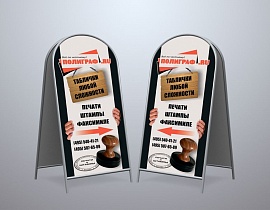 Учитывая производственные возможности нашей типографии, клиент может заказать изготовление выносной стойки в прямоугольном, арочном или нестандартном исполнении.