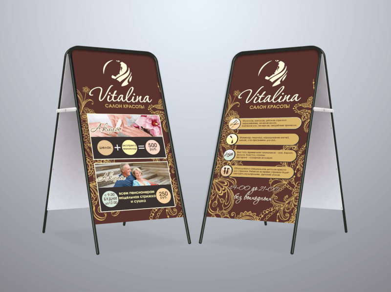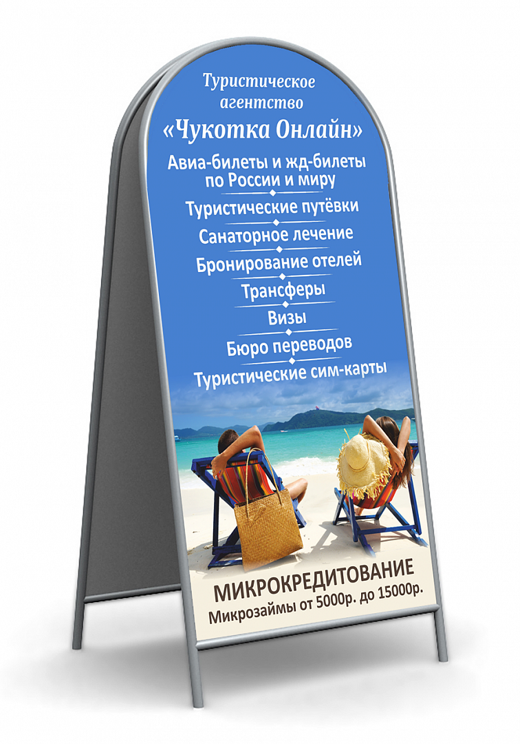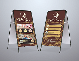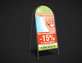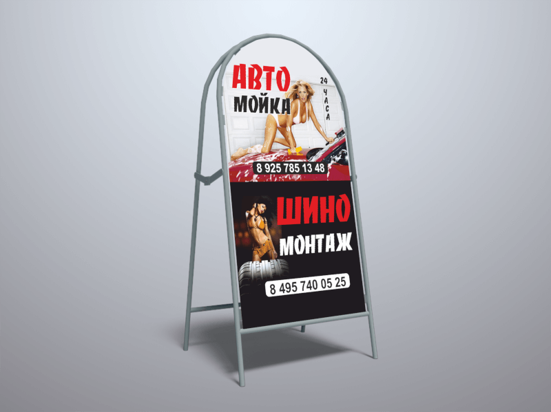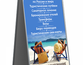 - 2 стороны. Используйте обе панели штендера, чтобы информация читалась в любом направлении.