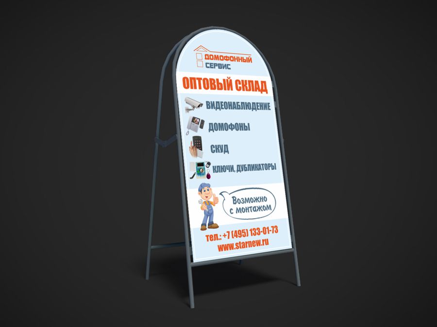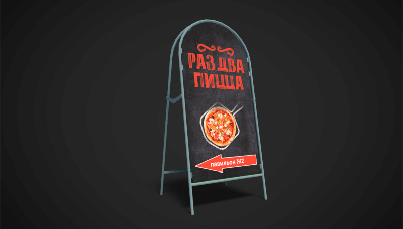 Конструкция находится на уровне взгляда, на нее сложно не обратить внимание. Она позволит вам превратить больший процент прохожих в своих клиентов.