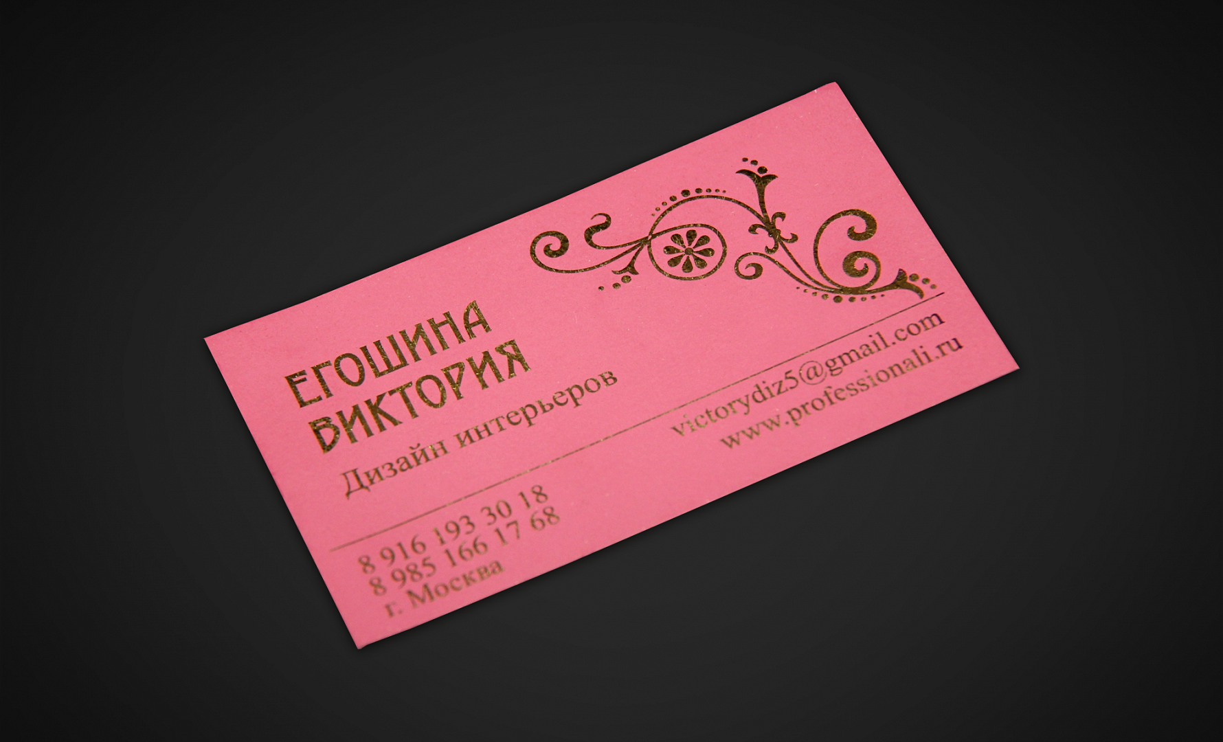 Тиснение фольгой на визитках применяют, чтобы выделить значимые элементы дизайна и сделать вашу карточку более запоминающейся. В такой технике можно нанести на визитку логотип, надписи, различные фигуры или полоски. Визитки с тиснением могут быть выполнены по любой технологии: цифровая, офсетная печать, шелкография и т.д. Технически процесс тиснения относится не к печати, а к послепечатной обработке, хотя иногда весь текст на визитку наносят с помощью фольги и клише.